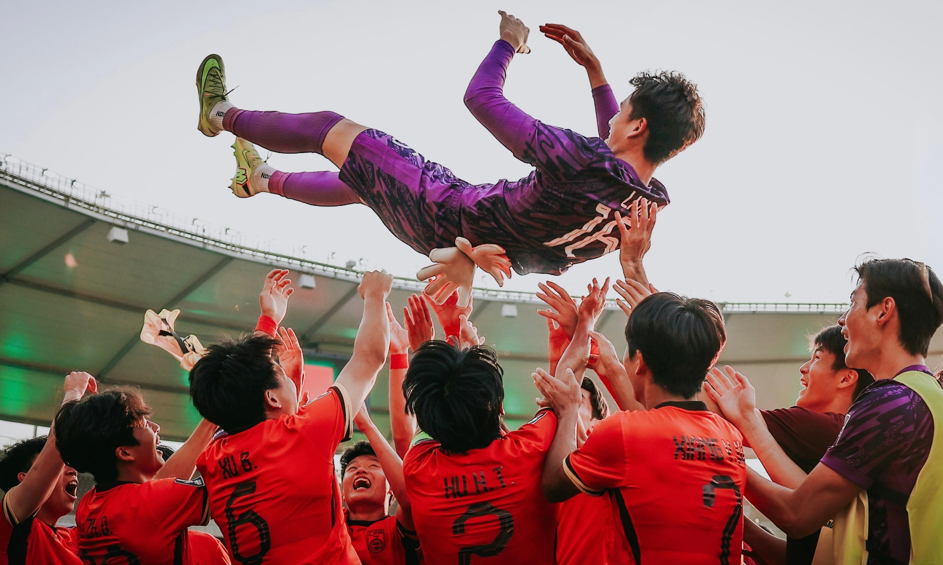 随后的故事大家都知道了,三场小组赛,李昊高接低挡,送出了16次精彩扑救,力保球门不失。中国队也以1胜2平的不败战绩突围,队史第一次晋级U23亚洲杯的八强。与乌兹别克斯坦队的1/4决赛,李昊更是一战成名,他单场送出8次扑球,并在点球大战中成功扑出对手的第四粒点球,帮助中国队爆冷进军四强。对阵越南的半决赛,李昊又送出4次扑救,用第五场零封,护佑着中国队一路杀进了决赛。